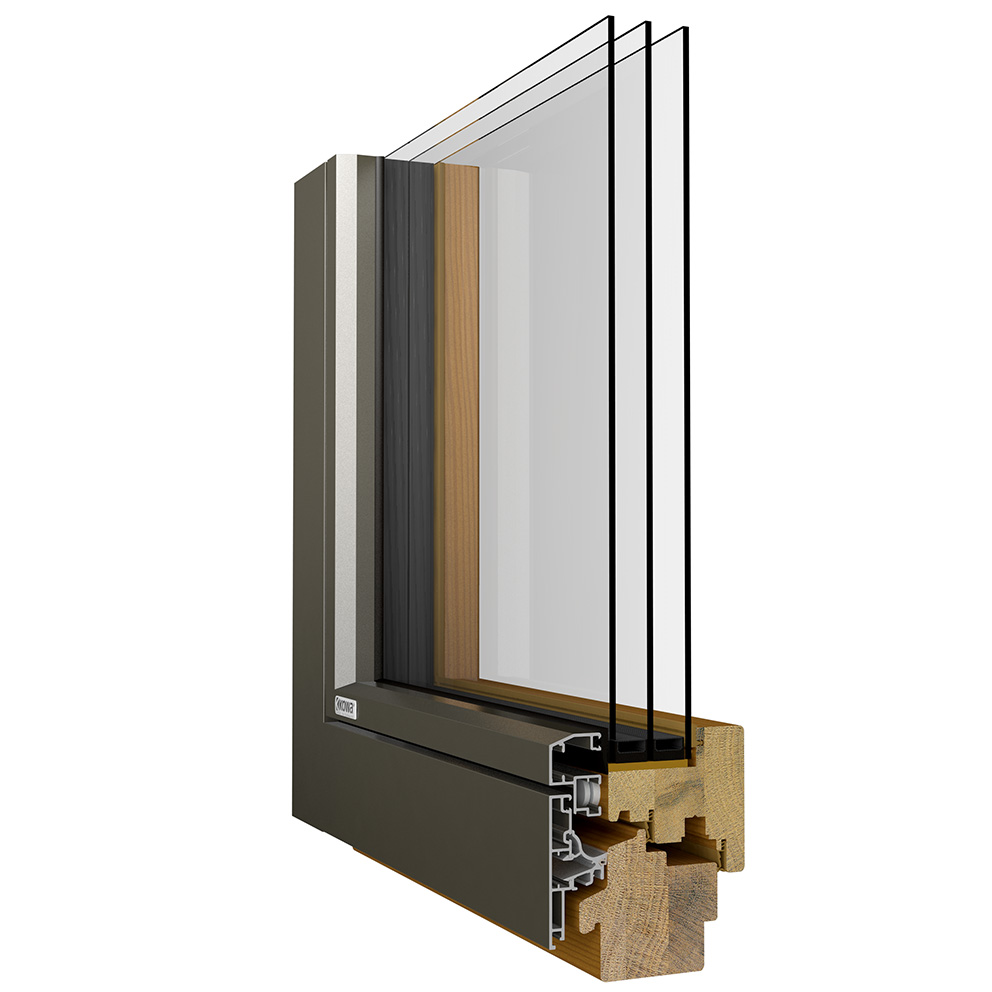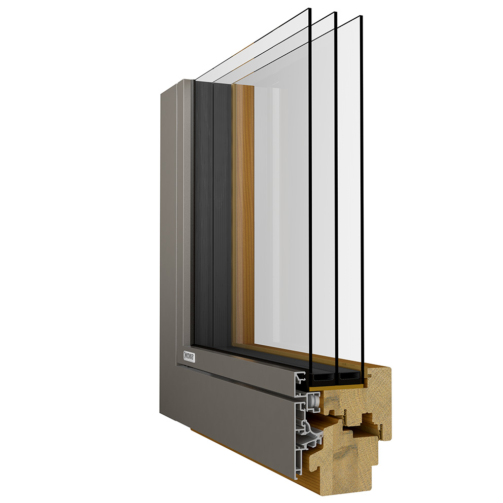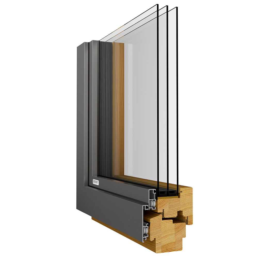 Die Aluminium-Außenschale trotzt dauerhaft Wind, Wetter und UV-Strahlung – und eröffnet dabei nahezu unbegrenzte Möglichkeiten in Farbe, Struktur und Design. Innen sorgt naturbelassenes Holz für ein behagliches Wohngefühl und bringt Wärme sowie Individualität in Ihre Räume. Diese gelungene Kombination vereint höchste Widerstandsfähigkeit mit wohnlicher Ästhetik – genau so, wie modernes Bauen heute sein sollte.