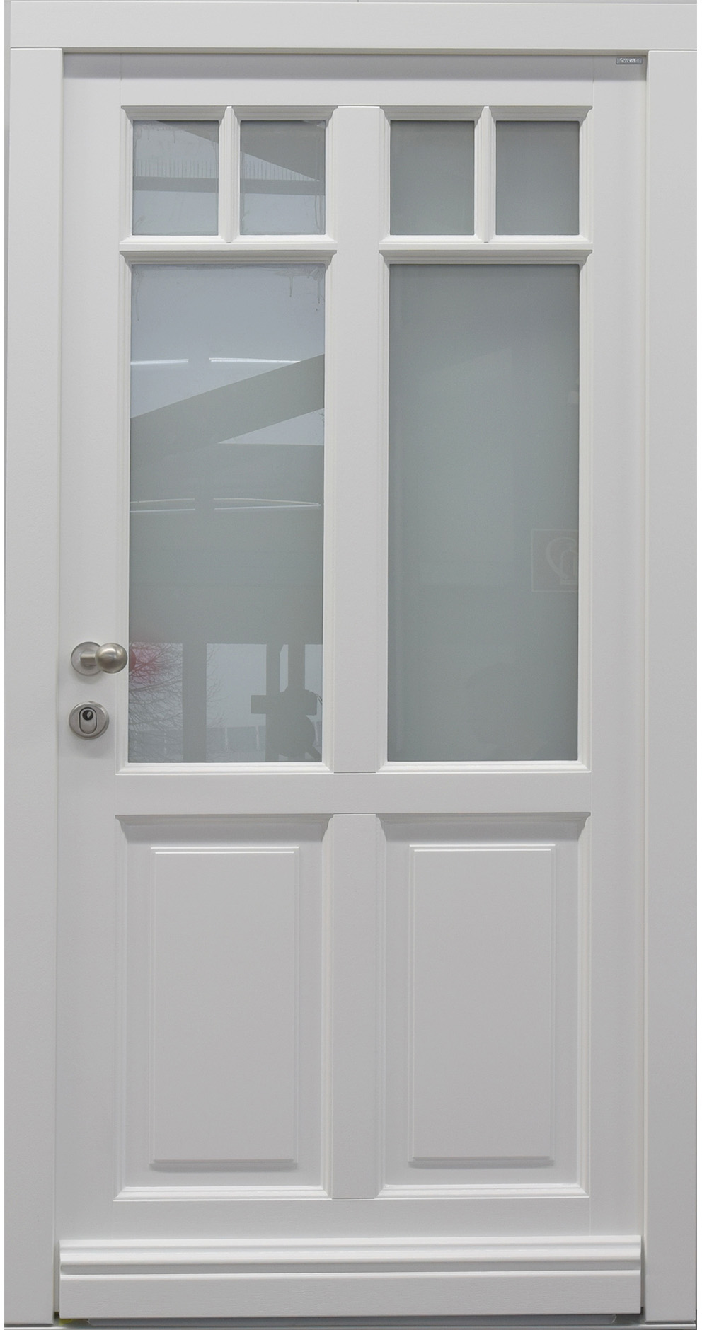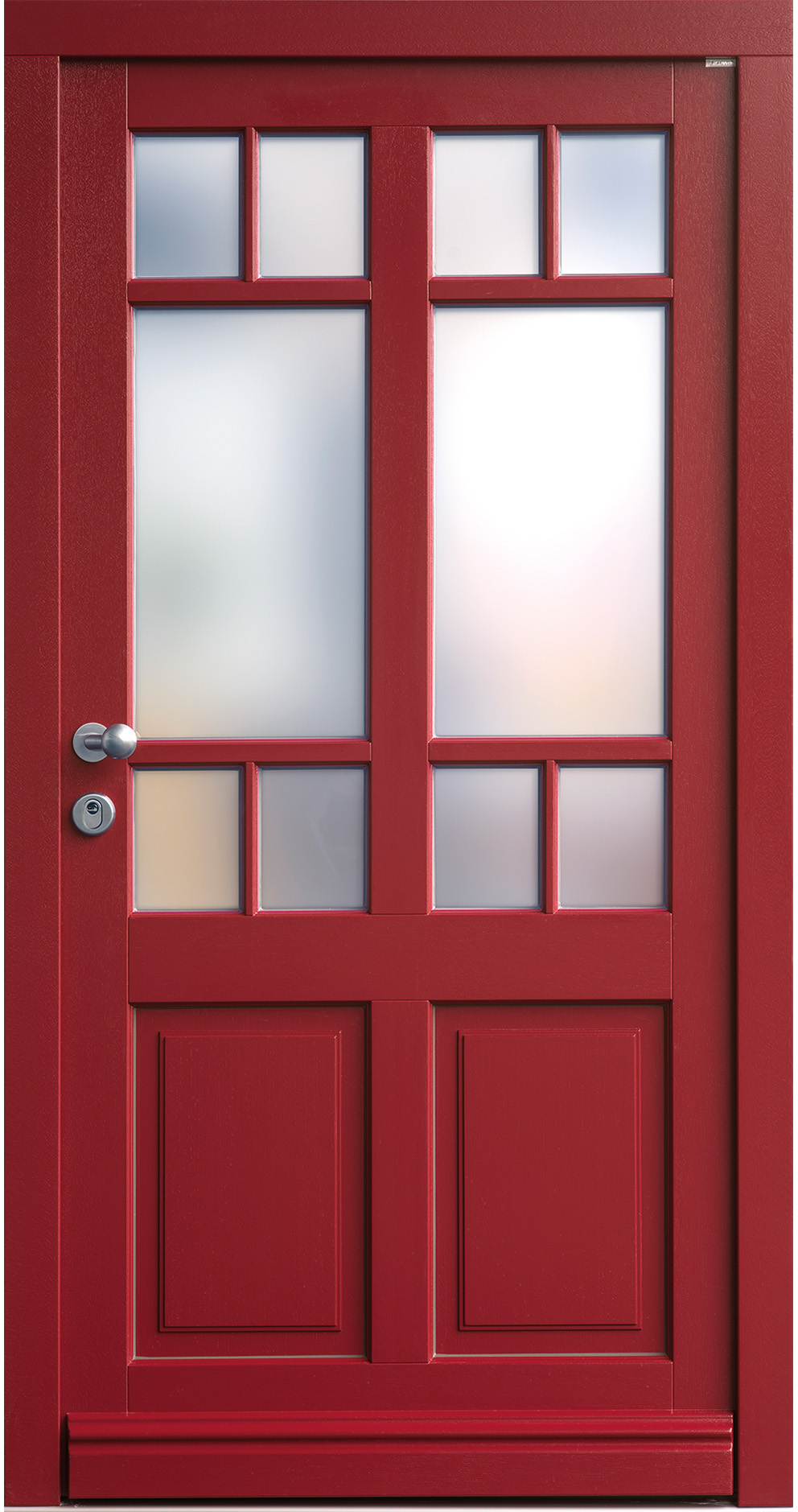 Ihr klassisches Design mit filigranen Sprossen und kunstvoll gearbeiteten Glasleisten verleiht dem Eingangsbereich einen nostalgischen Reiz. Die subtile Eleganz dieser Türen bringt traditionellen Stil in moderne Architektur. Sie passen hervorragend zu Altbauten, verleihen aber auch Neubauten eine besondere Note – ein stilvolles Statement für Liebhaber des Bewährten.