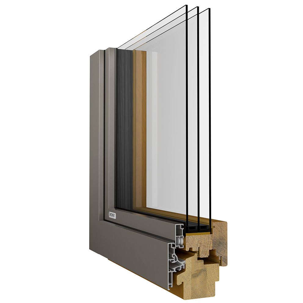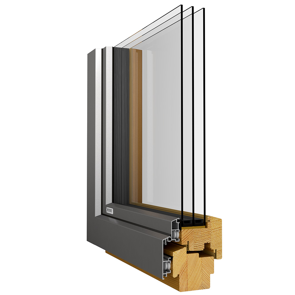 Die Aluminium-Außenschale trotzt dauerhaft Wind, Wetter und UV-Strahlung – und eröffnet dabei nahezu unbegrenzte Möglichkeiten in Farbe, Struktur und Design. Innen sorgt naturbelassenes Holz für ein behagliches Wohngefühl und bringt Wärme sowie Individualität in Ihre Räume. Diese gelungene Kombination vereint höchste Widerstandsfähigkeit mit wohnlicher Ästhetik – genau so, wie modernes Bauen heute sein sollte.