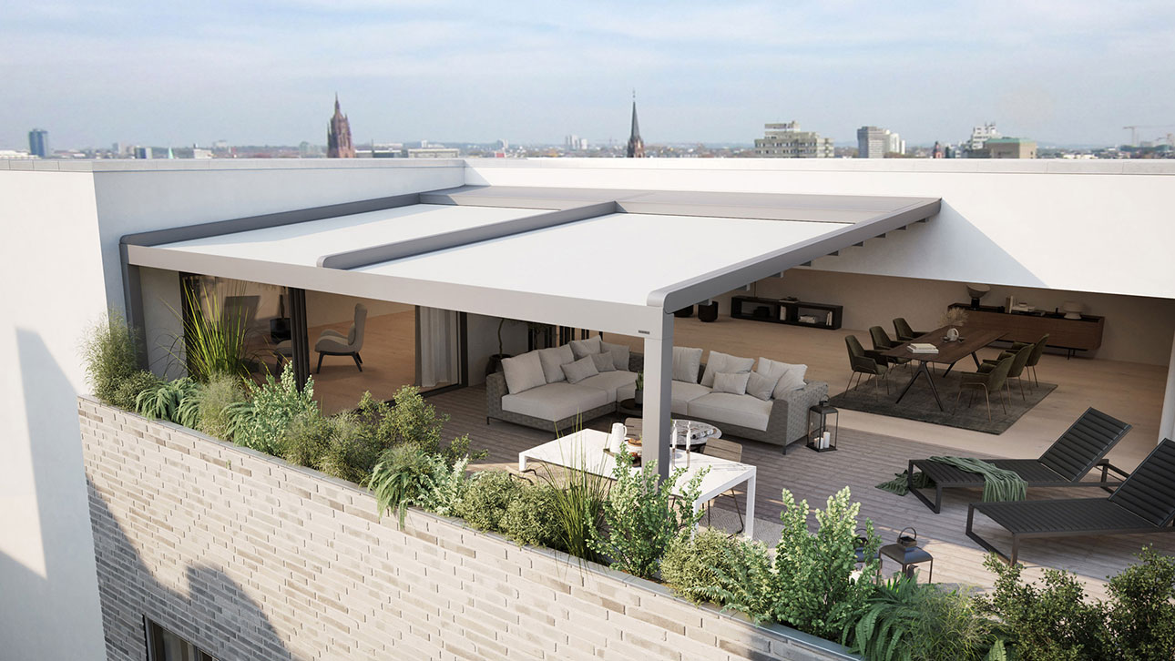 Die Entwicklung der markilux pergola cubic folgte der Designphilosophie des Bauhaus-Stils: klare und funktionale Formen verbinden sich mit einfachen kubischen Linien zu einem harmonischen Gesamteindruck.