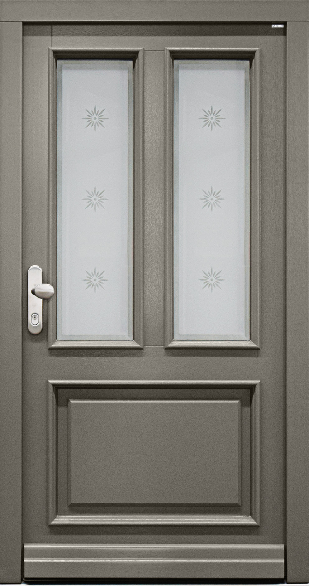 Ihr klassisches Design mit filigranen Sprossen und kunstvoll gearbeiteten Glasleisten verleiht dem Eingangsbereich einen nostalgischen Reiz. Die subtile Eleganz dieser Türen bringt traditionellen Stil in moderne Architektur. Sie passen hervorragend zu Altbauten, verleihen aber auch Neubauten eine besondere Note – ein stilvolles Statement für Liebhaber des Bewährten.