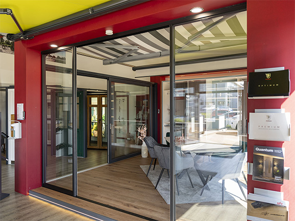 In der 2020 errichteten Ausstellung mit Innen- und Außenbereich erhalten Sie eine Übersicht über das vielfältige Produktangebot und können die unterschiedlichen Markisenmodelle und Pergolen, Haustüren, Kunststofffenster und Rollladen vor Ort ansehen und ausprobieren. Außerdem haben Sie in einer Möbelecke die Möglichkeit, in einem Beratungsgespräch Ihre Wunsch-Möbelstücke zu planen.